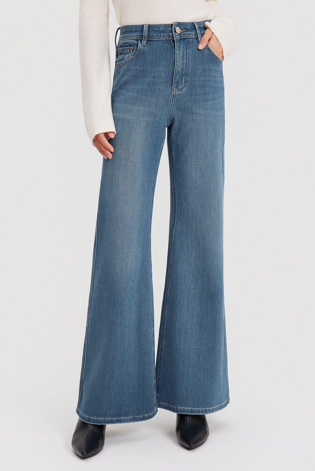 ASOBIO Mid-High Waist Flared Skinny Jeans