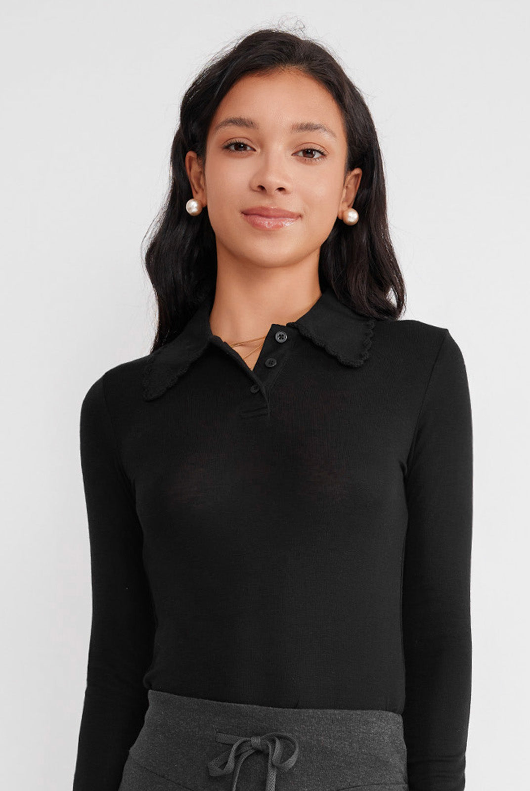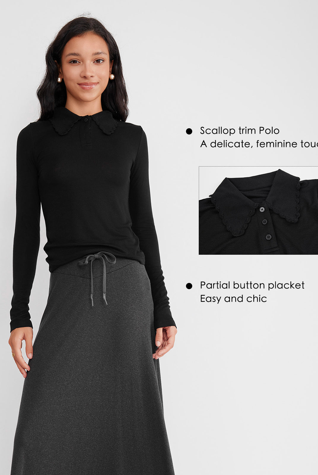 ASOBIO Scallop Trim Knitted Polo