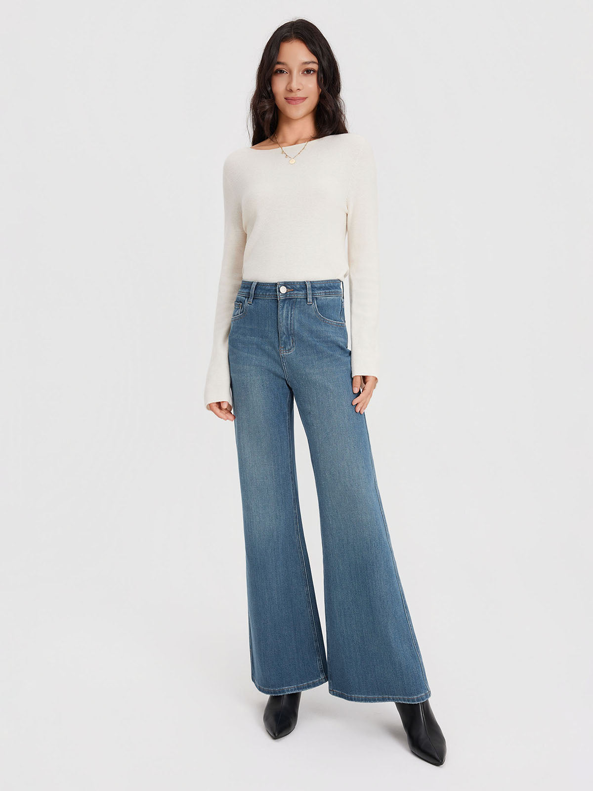 ASOBIO Mid-High Waist Flared Skinny Jeans