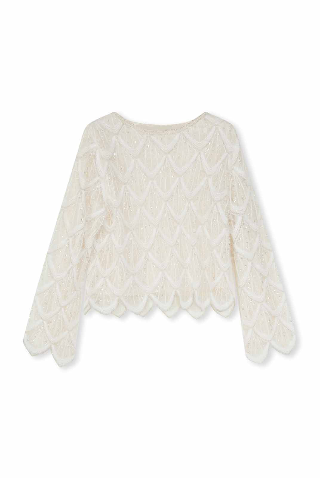 ASOBIO Feather-Trim Knit Cropped Sweater