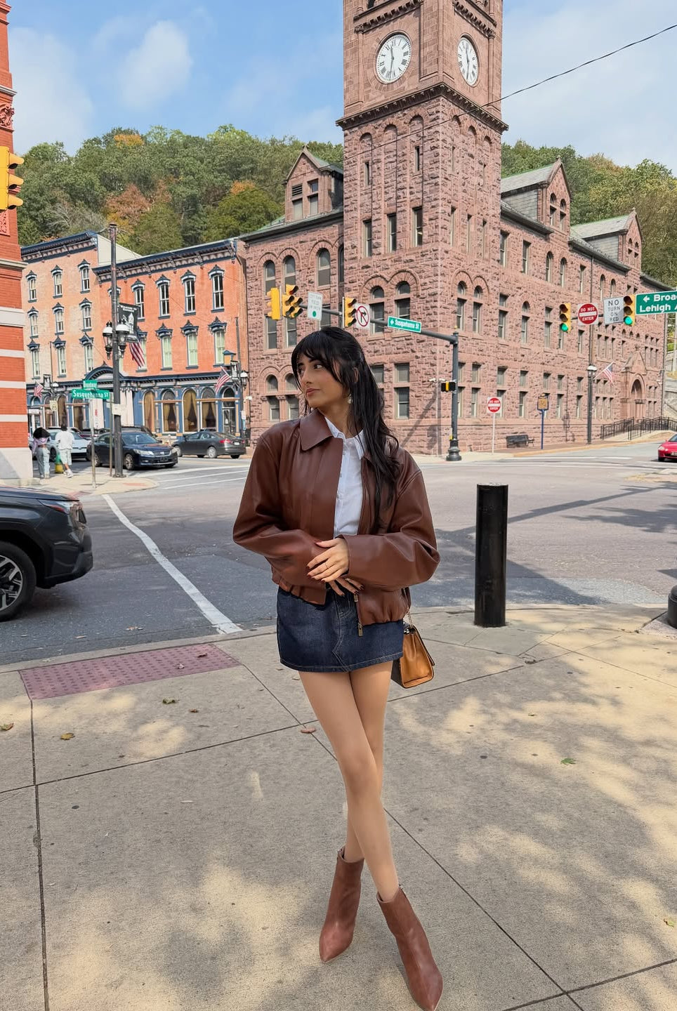 ASOBIO Relaxed Faux Leather Bomber Jacket