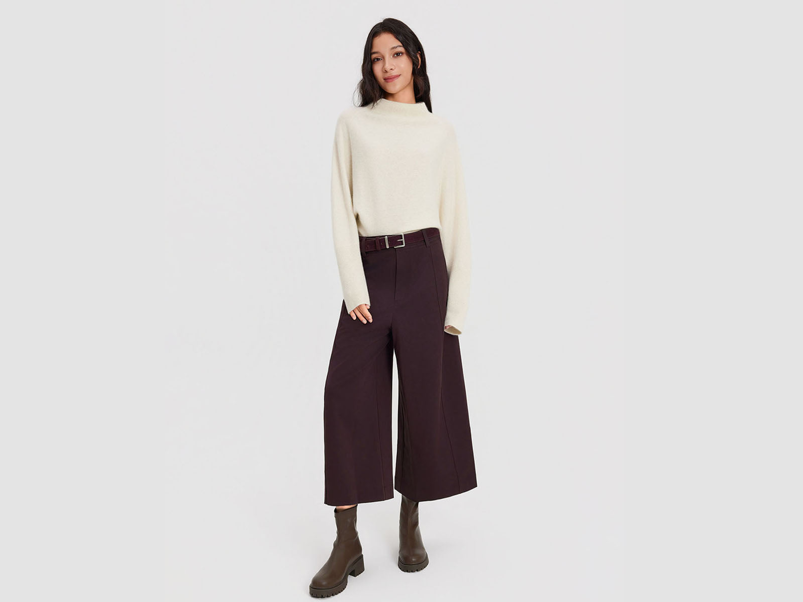 ASOBIO Effortless Pant Wool Blend Barrel-Leg Trousers