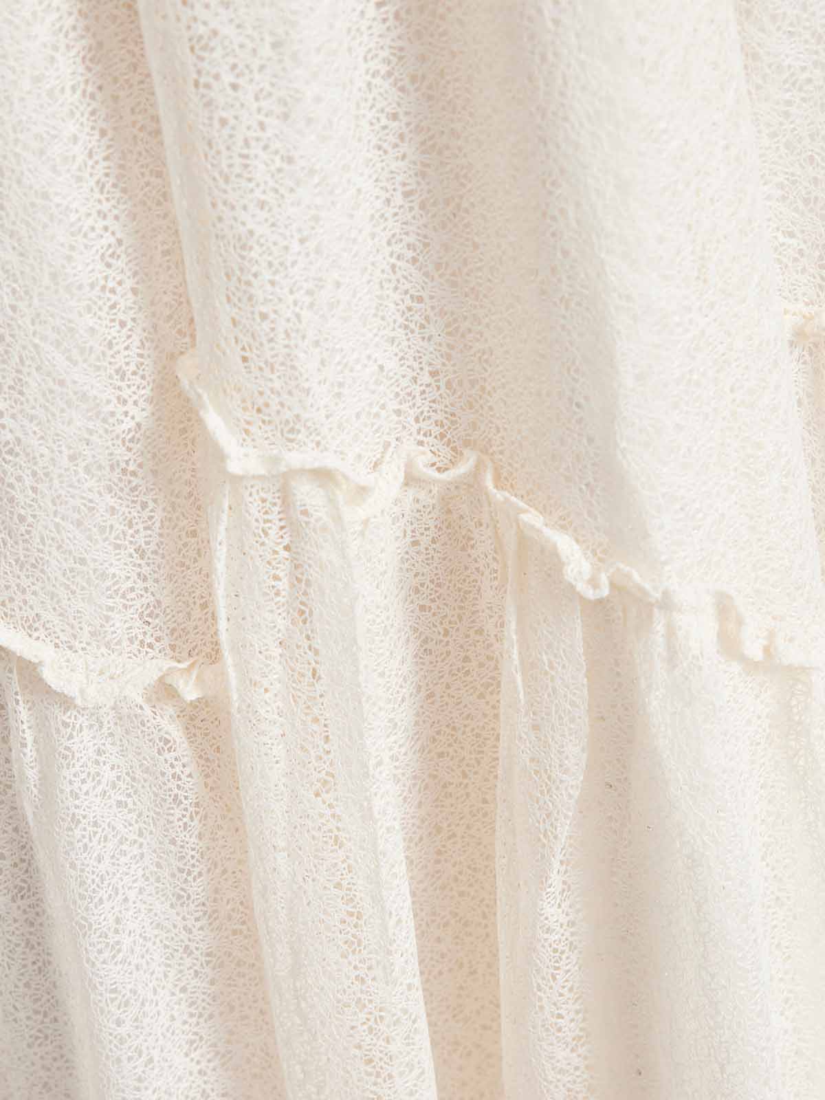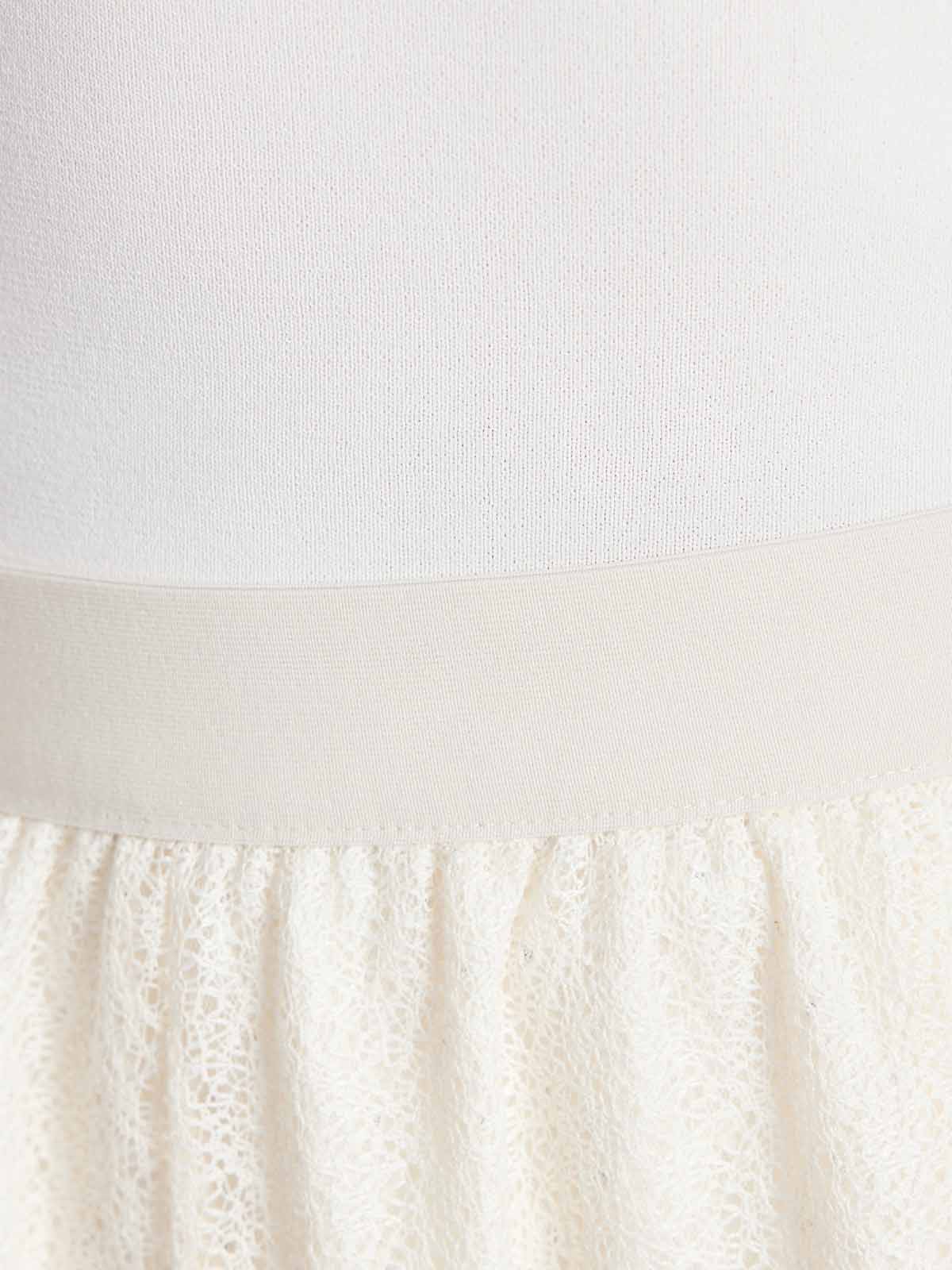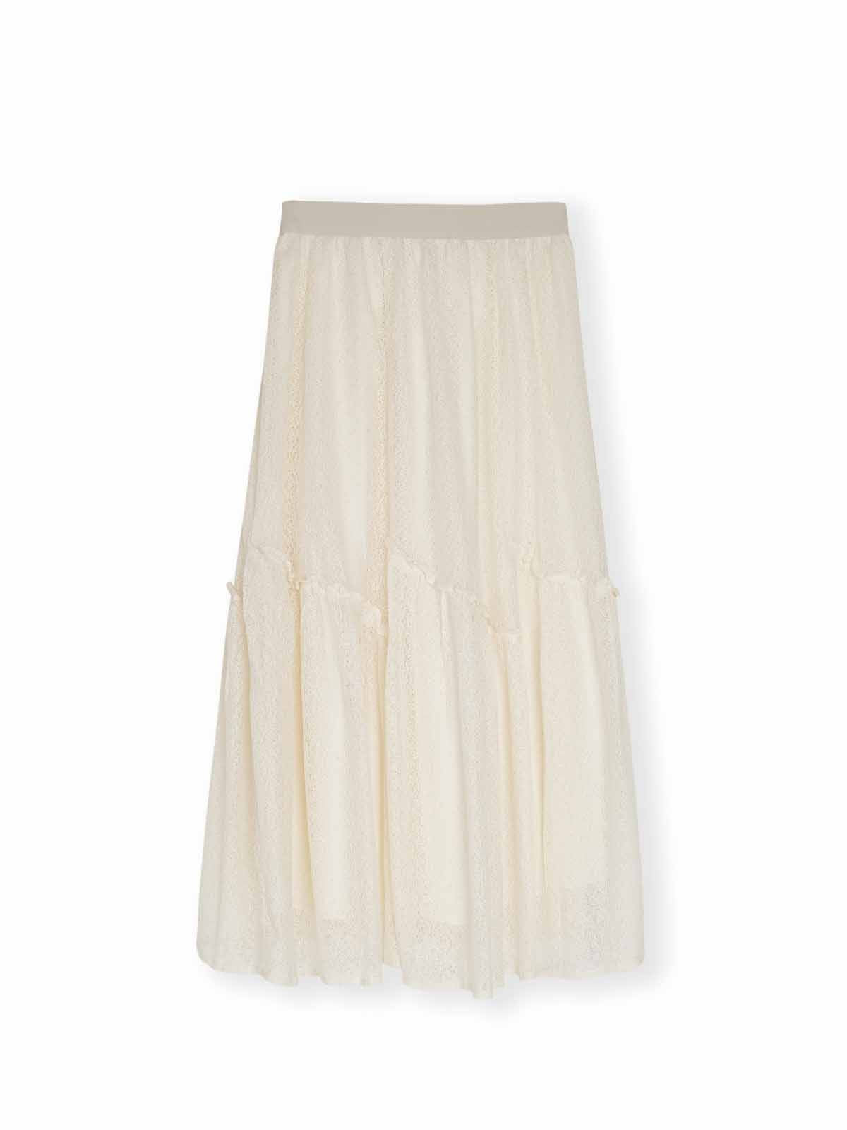 The elastic-waist midi skirt skims the body with a classic fit, featuring a flowing silhouette and delicate lace jacquard that glimmers subtly as you move.