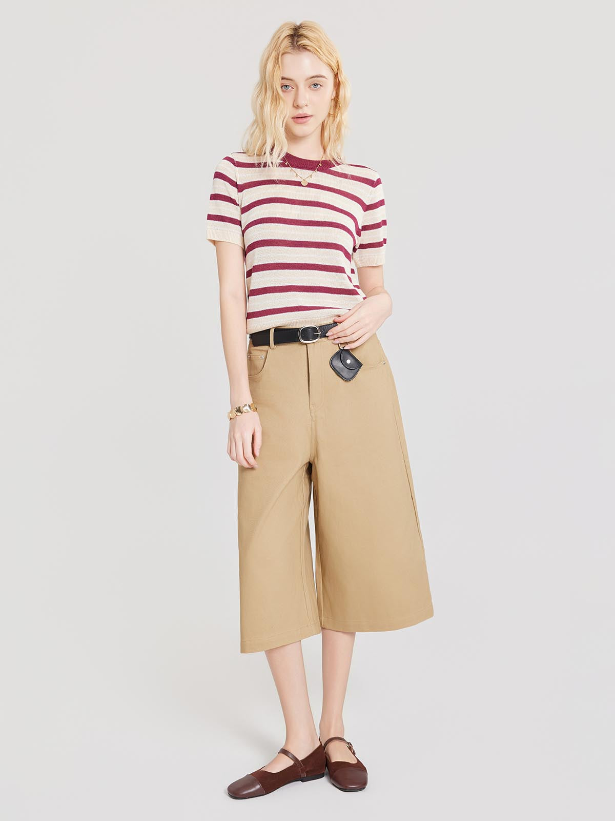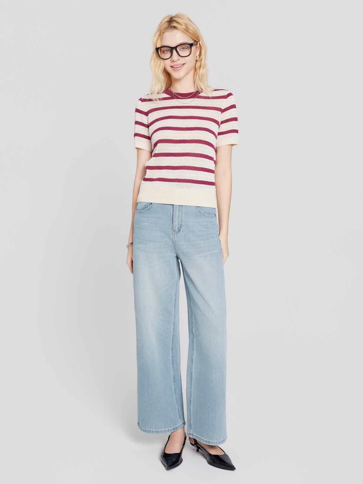 ASOBIO Striped Slim Knit Top