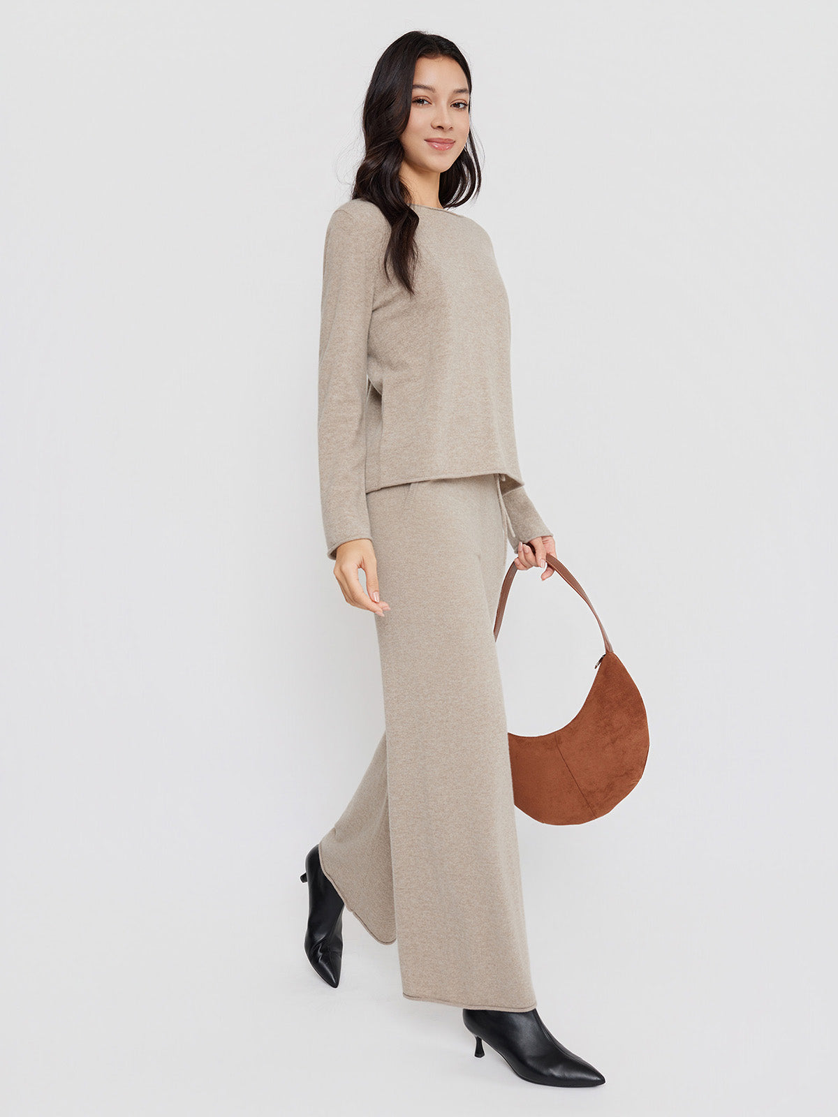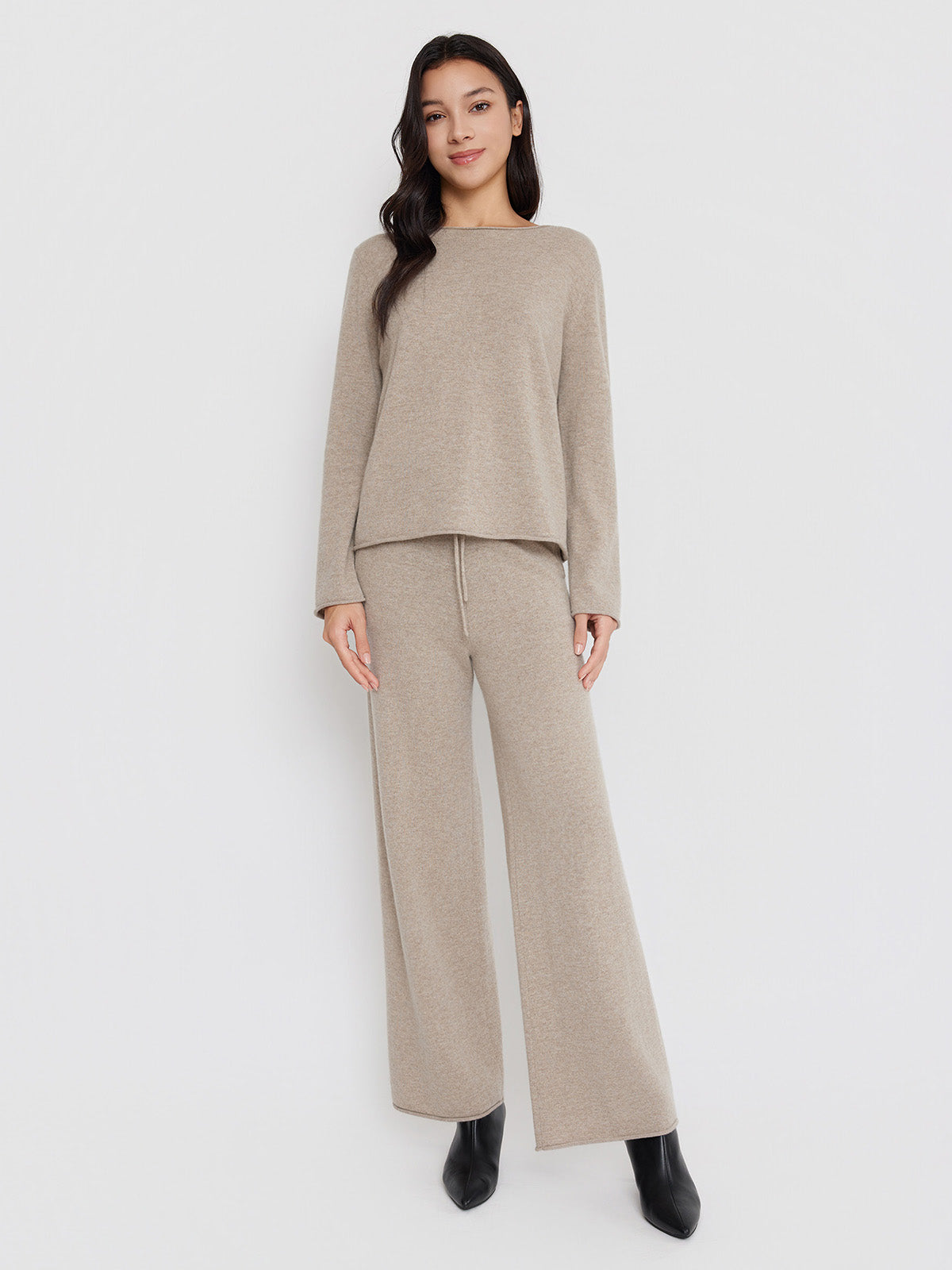ASOBIO Wool-Cashmere Rolled Edge Pullover Sweater