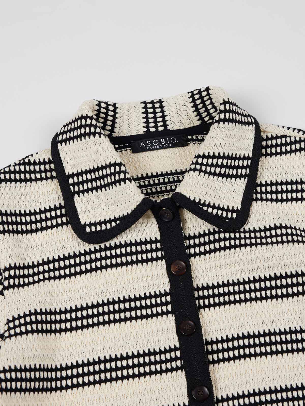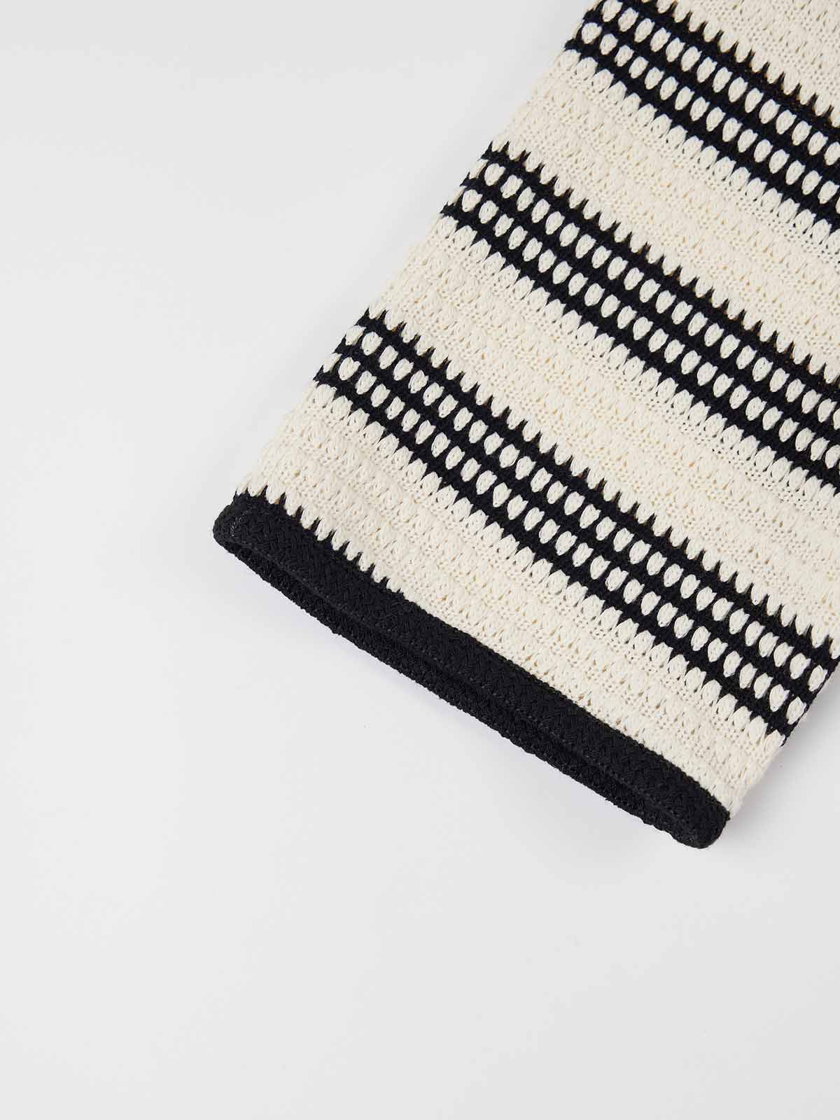 It’s made from breathable 100% cotton with a textured crochet stitch and timeless black-and-white stripes that feel clean and effortless.