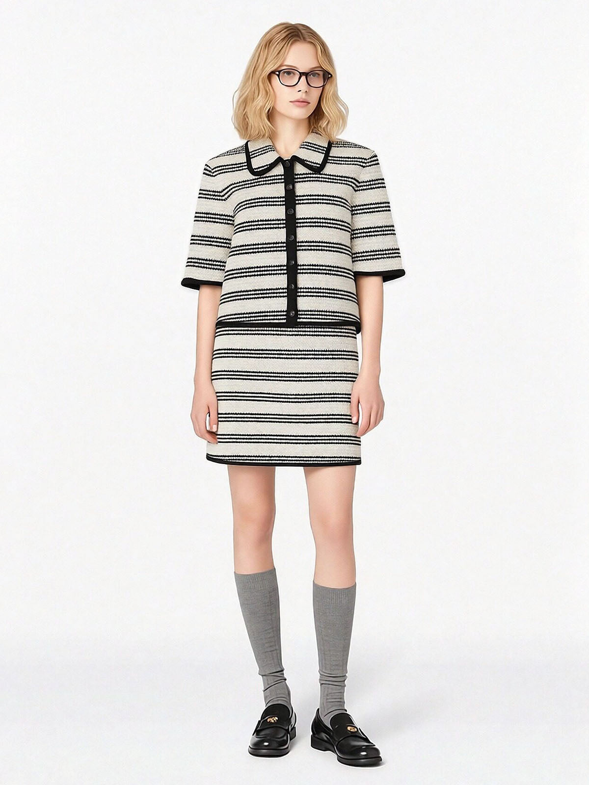 Style together: ASOBIO Crochet Stripe Cardigan + ASOBIO Cotton Mini Skirt.