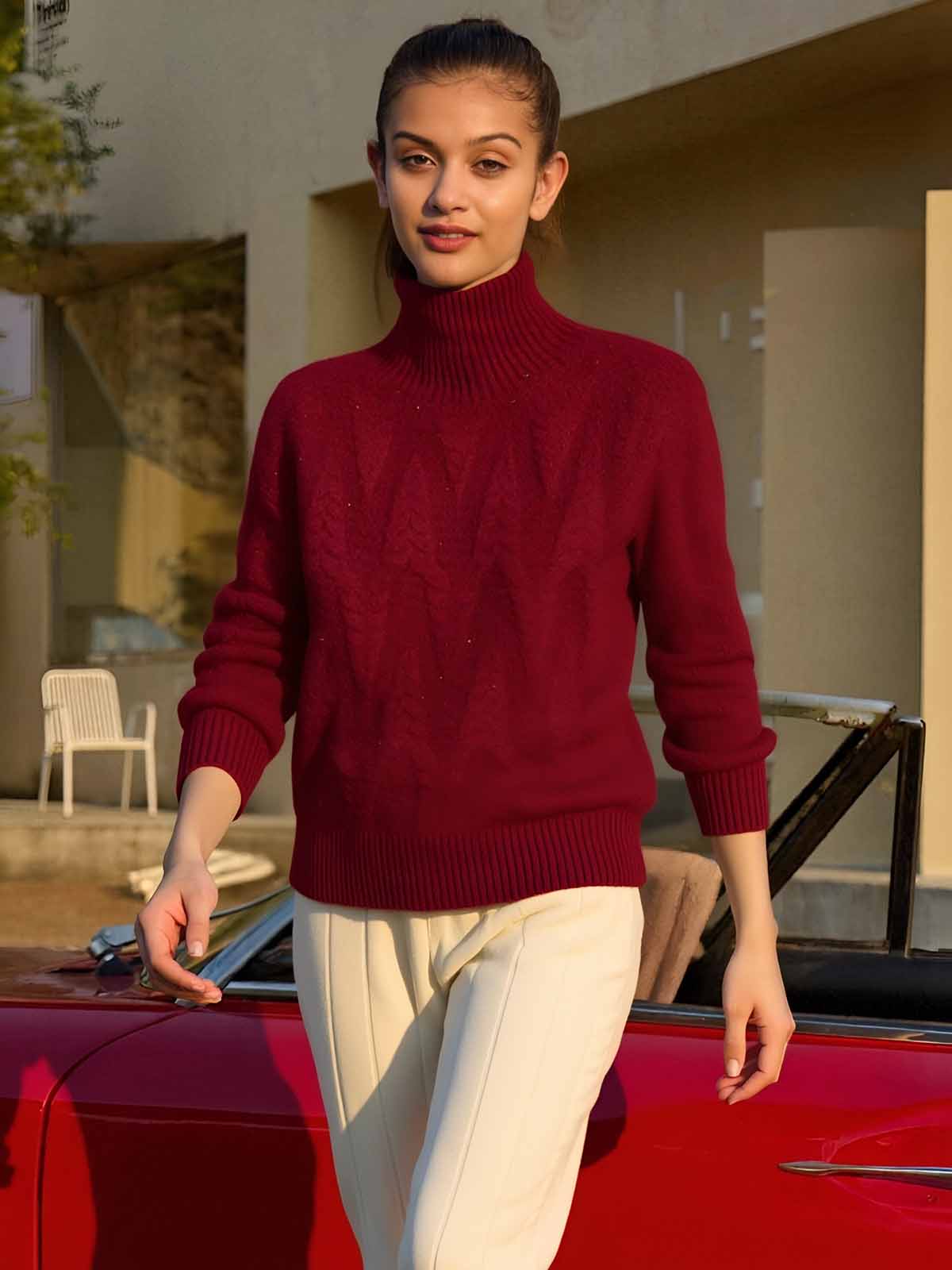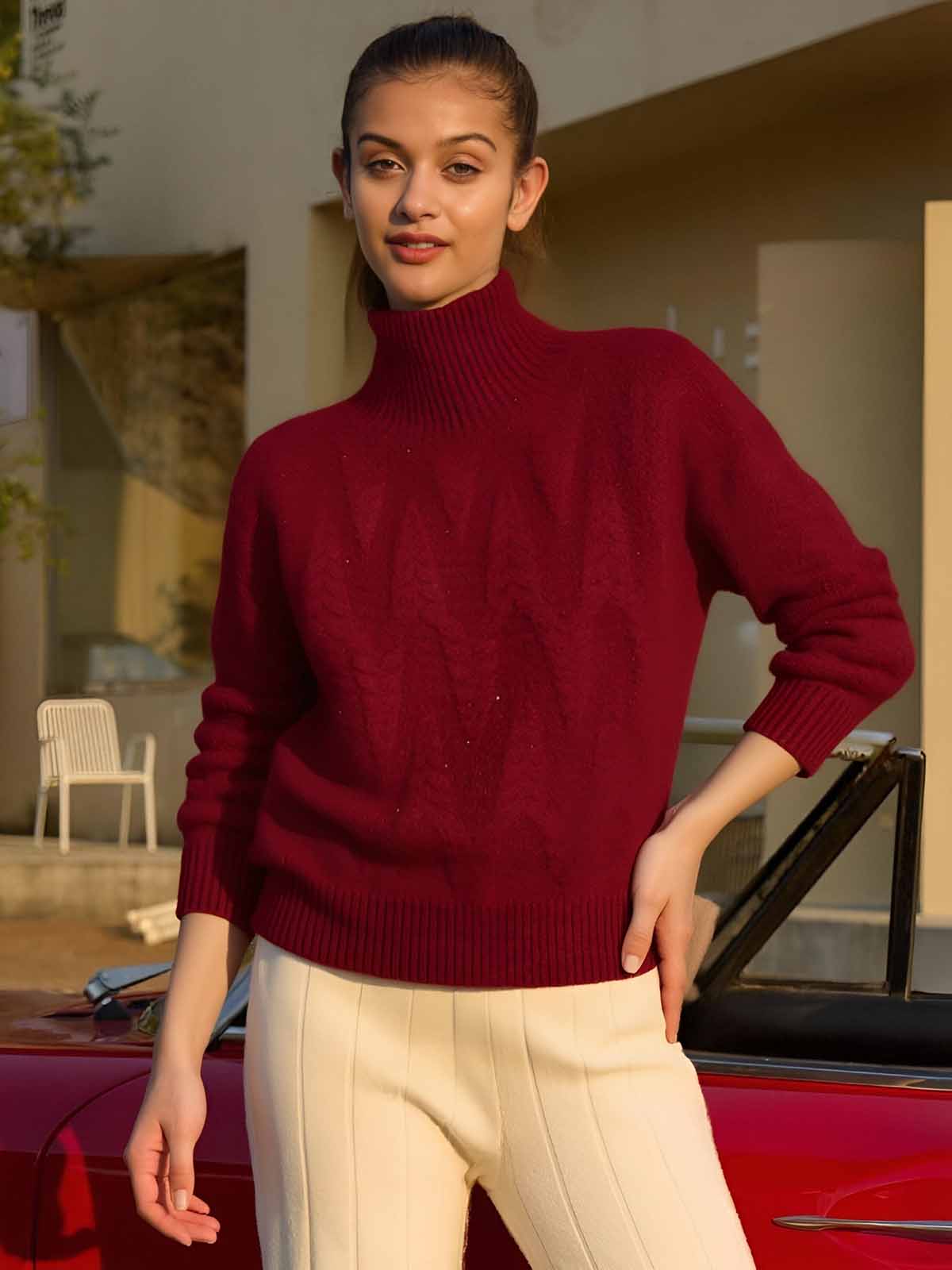 ASOBIO 100% Wool Turtleneck Pullover Sweater