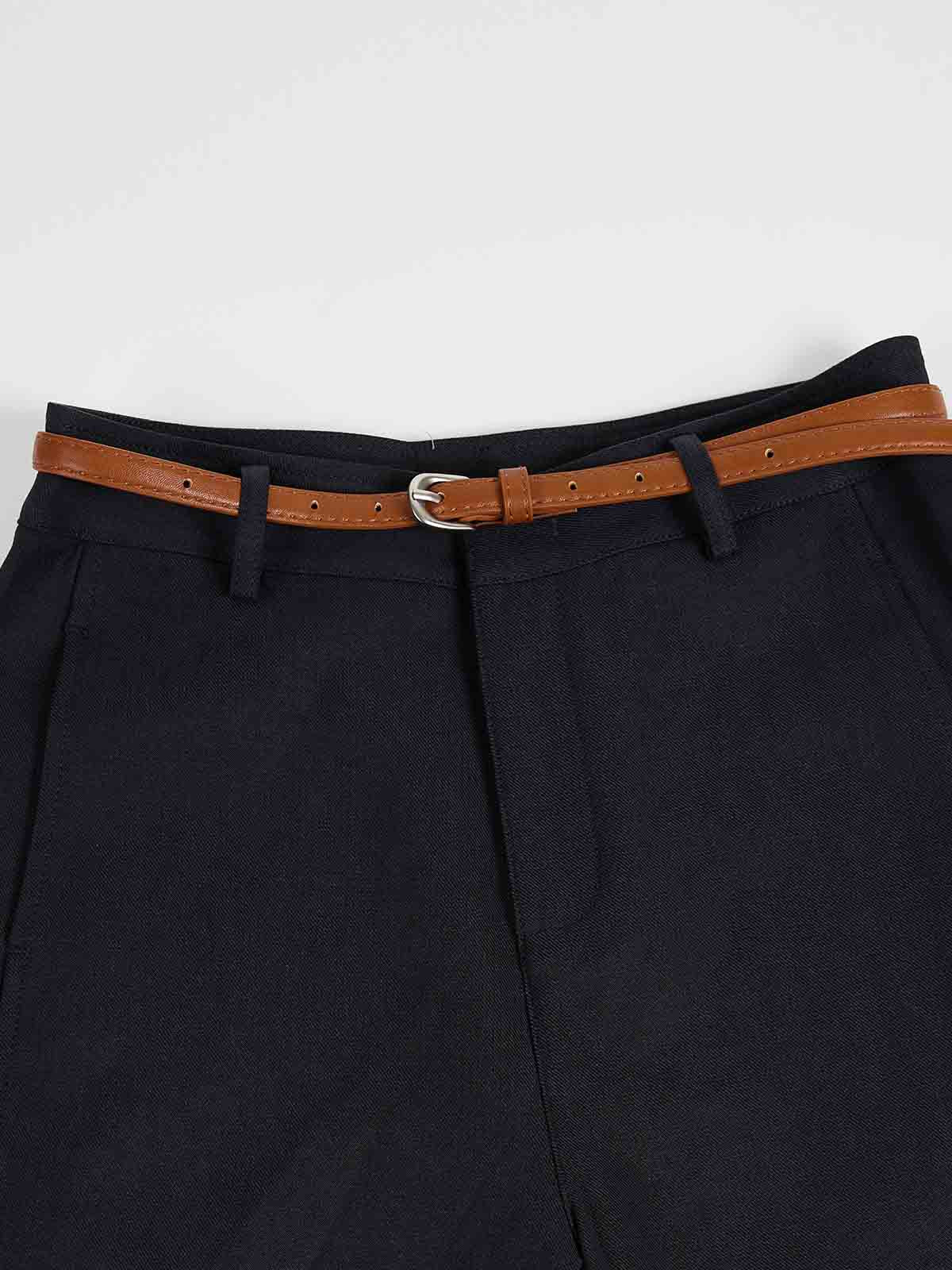 The Belted Pant is a mid-high rise cropped style with a relaxed fit and refined narrow belt detail. Soft structure and clean lines create an easy, everyday silhouette.